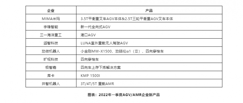 根據(jù)新戰(zhàn)略移動(dòng)機(jī)器人產(chǎn)業(yè)研究所統(tǒng)計(jì),2022年一季度企業(yè)發(fā)布面向工業(yè)領(lǐng)域應(yīng)用的移動(dòng)機(jī)器人近10款,包括AMR、叉車AGV、港口AGV等。其中大部分都是在已有產(chǎn)品上的迭代升級(jí)。