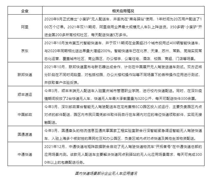 目前,無人配送市場經過前期探索,主要有三大典型場景:快遞、外賣和商超零售。